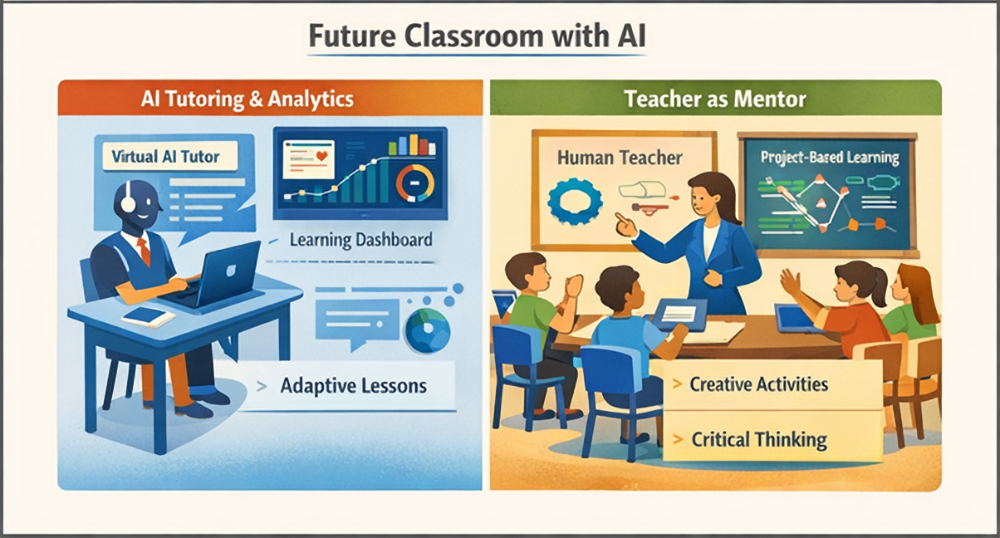 This allows teachers to focus on mentorship, creativity, and critical thinking development.